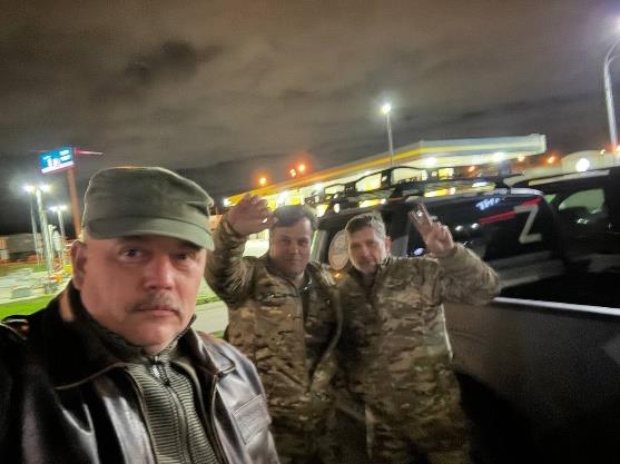 | 2 | 3-8 января | Гуманитарные грузы 2-5-7 роты 1430 мсп 270 литров моторного масла в ремроту, медикаменты в медроту, автомобиль Чероки. Забрали Ниву "Нюшу" в ремонт — верой и правдой служащей уже почти год бойцам. В Таганрог привезли ТНВД на сломавшуюся и оставленную там в прошлом походе Тойоту. | Москва - Запорожская область | 300 АНО ЦПВ «ГВАРДИЯ», Союз ВПК «Дивизион» | ![]() |